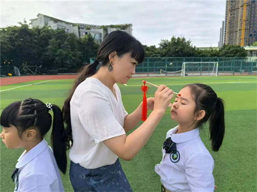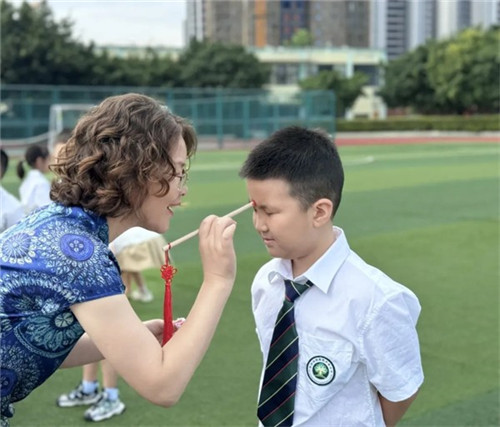这场传统与现代交融的仪式,既是对中华优秀传统文化的传承,也是对学子们开启人生新阶段的美好祝愿。额间那一点鲜红,寓意开启智慧、目明心亮,从此好读书、读好书,在黄桷树下茁壮成长。