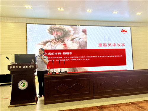 活动伊始,四川女子监狱政策法规科的吴警官以“为什么要铭记抗战历史”为切入点,通过珍贵的历史影像、详实的史料记载,带领师生们重温了那段烽火连天的抗战岁月。一幕幕历史场景在师生眼前徐徐展开,让大家深刻感受到了革命先烈们为了民族独立和解放,不惜抛头颅、洒热血的伟大精神。