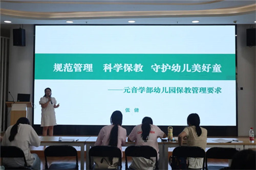 宁安幼儿园保教主任张倩聚焦“保教管理要求”,细致梳理了保教工作的各项规范和标准,强调了保教结合的重要性,确保各项教育工作在科学、规范的轨道上高效运行。