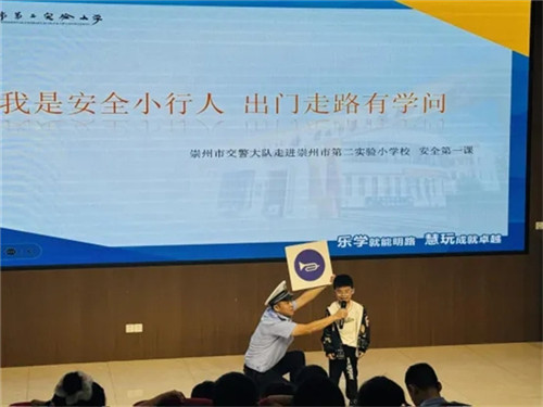 为进一步增强一年级学生的交通安全意识,守护孩子们的出行安全,近日,崇州市第二实验小学(以下简称:崇州实验二小)特别邀请崇州交警大队的民警叔叔,为一年级萌娃们带来了一场生动有趣的交通安全知识课堂。