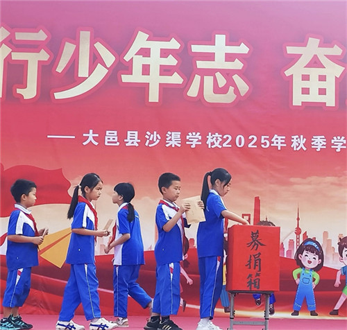 秋风送爽,爱心涌动。9月9日上午,一场温暖而充满意义的“99公益日”募捐活动在大邑县沙渠学校举行。全校师生齐聚一堂,以班级为单位,依次将满载爱与希望的善款投入募捐箱,用实际行动践行公益精神,传递温暖与力量。