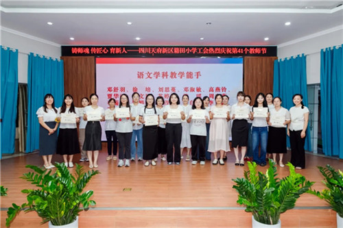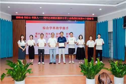9月9日,在第41个教师节来临之际,四川天府新区籍田小学工会成功举办了一场以“铸师魂 传匠心 育新人”为主题的教师节庆典活动,为辛勤耕耘在教育一线的教师们送上了节日的祝福与敬意。