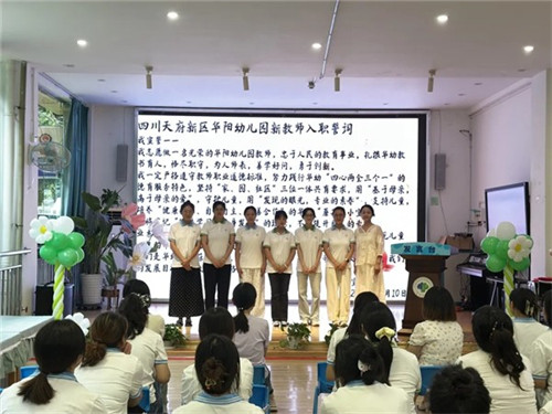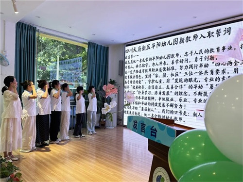 新入职的“蘑菇新人”们庄严宣读入职誓词,青涩却坚定的声音里,藏着对学前教育事业的无限热忱。随后,新教师团队集体合影,用镜头定格加入华幼大家庭的珍贵一刻。