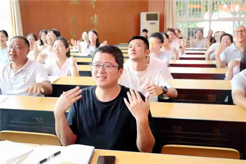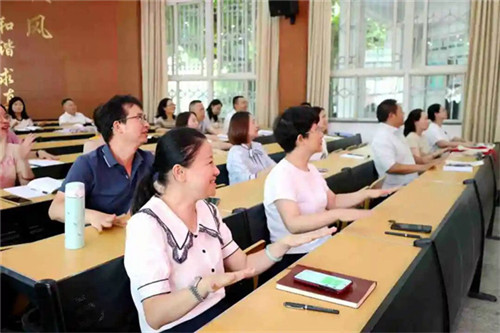 会议正式开始前,心理专职教师李雪梅带领全体同仁在《你笑起来真好看》的节奏中做热身运动,奏响了会议的序章。