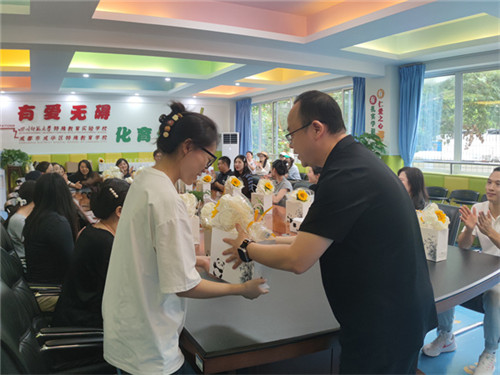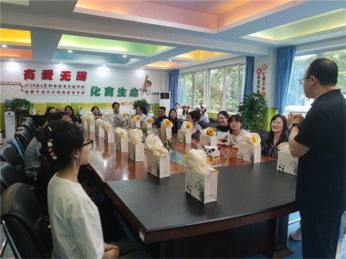 学校二楼会议室内洋溢着温馨与感动,党支部书记、校长屈杰代表学校党支部和工会向辛勤工作在一线的教师们致以节日的问候和崇高的敬意,他说:“这是我与大家共度的第一个教师节,感谢大家一直以来为特殊教育事业发展所付出的不懈努力和杰出贡献。祝愿全体老师身体健康、家庭幸福、万事如意、永远快乐!”