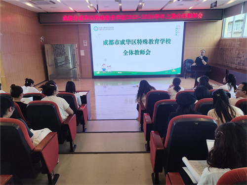 9月10日,学校召开全体教师大会。党支部书记、校长屈杰代表学校向全体教职员工致以问候和感谢,勉励全体教师保持教育热忱,以初心对待每一个日子,用温暖和专业为特殊孩子撑起一片成长的蓝天。