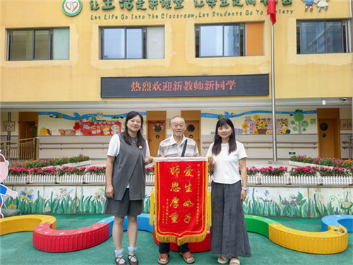 更让人感动的是,已毕业学生小楠的外公特意重返校园,将一面写有“师恩厚重,爱生如子”的锦旗送到老师手中。小楠外公哽咽地说:“感谢老师们这些年来的耐心教导和无私关爱,你们不仅是孩子的老师,更是我们全家的引路人。”
