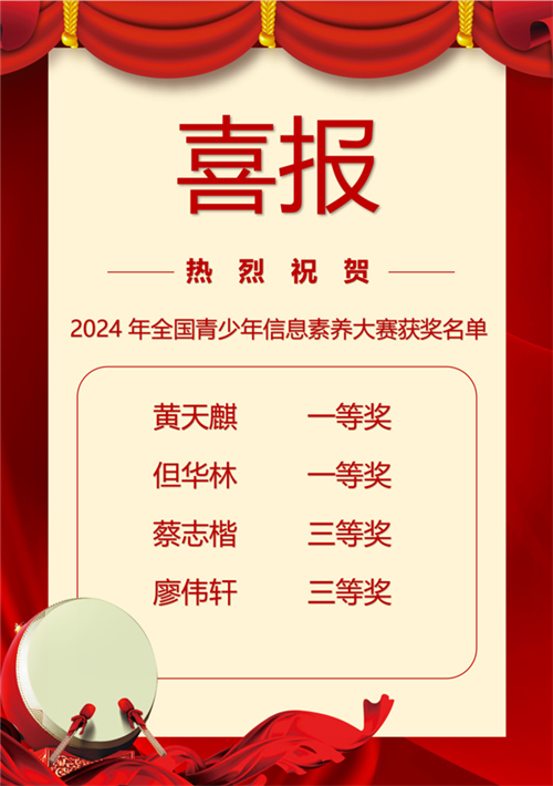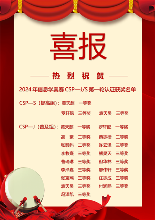 在上年度两项信息学顶级赛事——全国青少年信息素养大赛和信息学奥赛CSP—J/S中,三原学子与全国顶尖高手同台竞技,凭借过硬的实力和稳定的发挥,取得了优异成绩!四名同学获得全国奖,二十余名同学获得省级奖励。