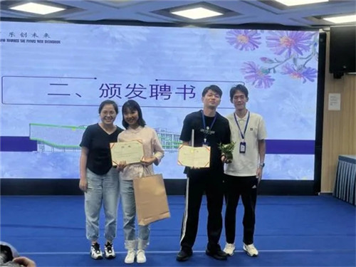新鲜血液的注入,为学校的教育发展增添蓬勃生机。6位新教师依次上台进行自我介绍,分享自己的教育理想与规划,并共同带来朗诵《星光汇聚 共赴山海》。