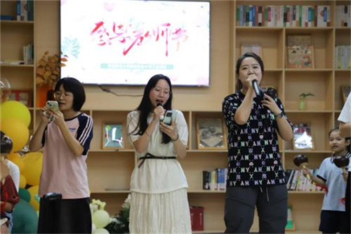 校园洋溢着温馨与感恩的氛围。学校设置了创意祝福墙,墙上贴满了各班学生写下的祝福便利贴。“老师,您辛苦了!”“祝老师节日快乐,桃李满天下!”“感谢您照亮我们前行的路”……一句句真挚的话语汇聚成爱的海洋。同时,各年级学生代表共同献上了一场感人至深的诗歌朗诵快闪表演。同学们以声传情、以诗达意,用铿锵有力又饱含深情的语言,表达了对老师的感恩之情。