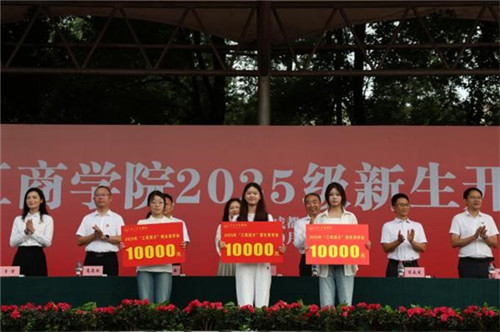 参加典礼的万余名新生中,既有以超越本科线近100分的高分段考生,也有第一志愿笃定报考学校的广大学子,还有毫不犹豫报考学校的教职工子女,这充分说明学校办学质量和社会认可度越来越高。典礼上,校领导分别为两校区招生大类录取分数最高者颁发万元英才奖金,为两校区线上第一个报到者派发温馨大礼包,以此回应这批优秀的新工商人的万里奔赴。