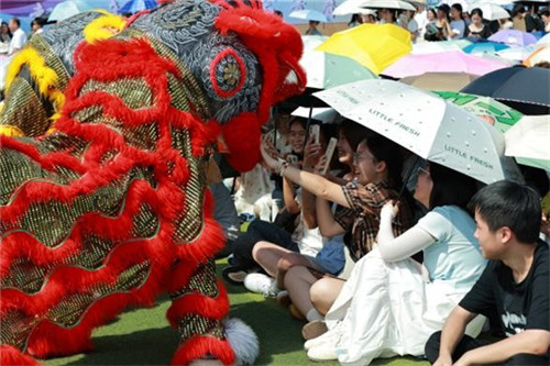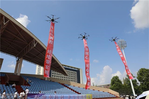 典礼现场气氛庄重而热烈。校园彩旗招展,主席台背景颜色鲜艳、简洁大气,运动场周围悬挂祝福标语。学校董事长王六章携全体校领导,与同学们一起欣赏青春热烈、异彩纷呈的团体舞蹈、舞狮表演、啦啦操表演等开场节目,以此庆贺这场跨越山海的相聚。