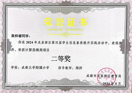 成长是一场多元探索之旅,袁梓睿用行动书写精彩篇章。科技赛道上,编程认证、航天赛事获奖,解码科学奥秘;运动场中,羽毛球挥拍、山间徒步,拥抱活力自然;艺术天地里,小军鼓考级、舞台演奏,奏响成长旋律。从科技实践的突破,到体育锻炼的坚持,再到艺术滋养的沉淀,他在不同领域穿梭,以探索为帆,让德智体美劳的养分,浇灌出“五育之星”的绚烂之花,奔赴属于自己的成长山海。(赖波 毛丽 袁梓睿妈妈)