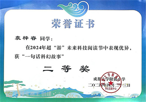 近日,成都大学附属小学(以下简称:成大附小)六年级四班袁梓睿同学用“一句话+一本书”,点亮科学教育实践探索之路。