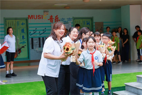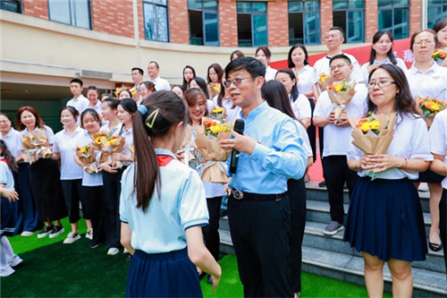 活动最温馨的环节莫过于献花仪式。在悠扬的乐声中,校级党政工团及少先队员代表,为每一位教师献上精心准备的鲜花。一束束鲜花,承载的是孩子们最纯真的谢意,也是学校对教师辛勤工作的肯定与关怀。老师们手捧鲜花,欣慰的笑颜与芬芳的花朵交相辉映,心中满溢着幸福与温暖!