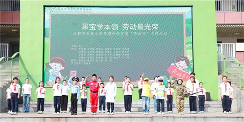 为培养学生热爱劳动、尊重劳动、珍惜劳动成果的意识,在“五一”国际劳动节来临之际,4月30日上午,由成都市玉林小学教育集团举办、玉林小学果堰分校承办的首届“果宝学本领 劳动最光荣”主题活动如期举行。本次活动由大队部杜唱璟老师和一年级六班魏博裕同学主持,各行各业的劳动者代表、集团各校区教师代表、全校师生以及各班家长代表齐聚一堂。