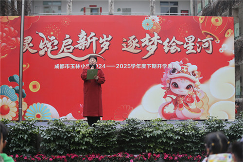 2025年2月16日,成都市玉林小学全体师生齐聚校园,举行了以“灵蛇启新岁,逐梦绘星河”为主题的2024-2025学年度春季开学典礼。典礼现场气氛热烈,师生们以饱满的热情迎接新学期的到来。