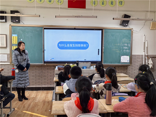班会课上,通过PPT、视频、图片等多种方式,各班班主任通过典型案例让同学们了解到踩踏事故的危险性和严重性,对踩踏事故有一个深刻的认识,一系列真实数据和图片,一个个触目惊心的悲剧触动同学们心灵的同时,给每个人敲响了安全的警钟,也让学生意识到“防踩踏”的必要性。最后对同学们提出安全要求,在楼梯通道内,上下楼梯都应该举止保持文明,人多的时候不拥挤、不起哄、不打闹、不故意怪叫制造紧张或恐慌气氛;下楼的学生应该尽量避免到拥挤的人群中,不得已时,尽量走在人流的边缘;当自己或前面有人突然摔倒了,要马上大声呼救,告知后面的人不要向前靠近等。