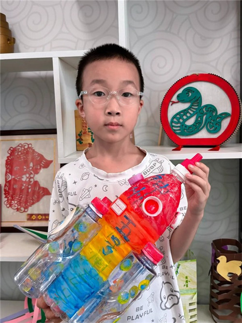 夏日的饮料瓶摇身一变,成为孩子们手中的艺术“魔法道具”!他们以粘贴、拼插、组合等方式,将平凡的瓶子塑造成童话城堡、机械未来等立体造型,让废旧材料在巧手下焕发艺术新生。
