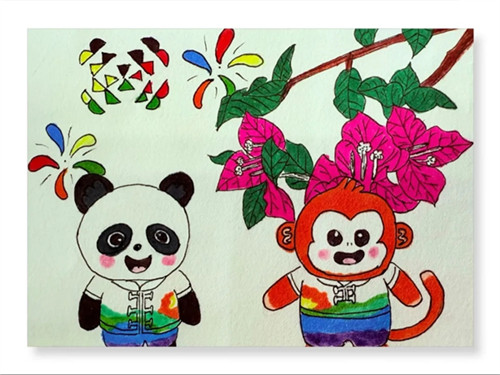 一张15×10cm的明信片,承载着孩子们对成都世运会、家乡风情与校园角落的深情。他们以绘画、拼贴等多元形式,将世运会的活力瞬间、祝小校园的绿意角落、成都街巷的烟火气息一一定格。