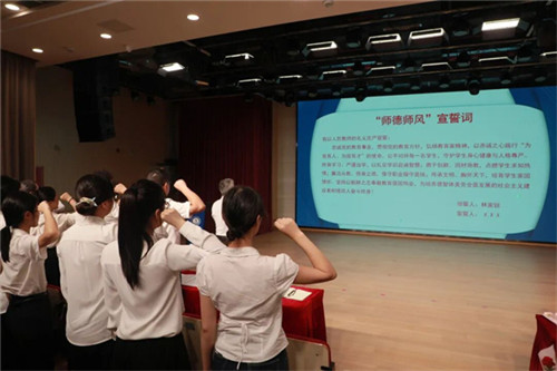 大会第一项议程聚焦“师德师风”建设。林家锐带领全体教师进行“师德师风”宣誓。林家锐着重指出,师德是教师的灵魂,必须常抓不懈,希望每一位教师都能以实际行动恪守职业操守,以赤诚之心投身教育事业,成为学生成长道路上的楷模。