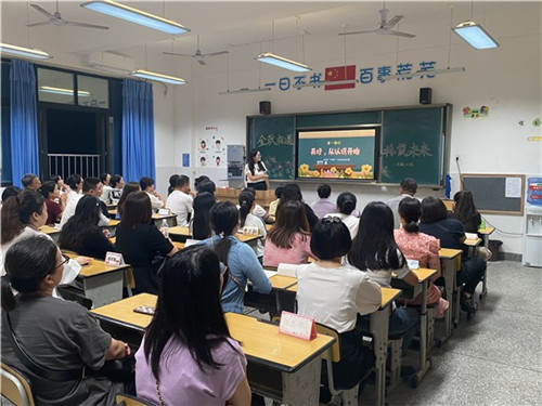 当晚,家长有序进入校园,按照指引分别前往学校至美报告厅与时光剧场两大主会场。学校党支部书记、校长周丽以《我们一起慢慢地快快走》为题,结合一年级孩子的身心发展特点,从学校文化、课程体系、协同育人等方面展开讲解,建议家长既要给予孩子足够的成长空间,又要把握教育引导的关键节点,让孩子在“慢适应”中实现“快成长”,赢得家长们的阵阵共鸣。