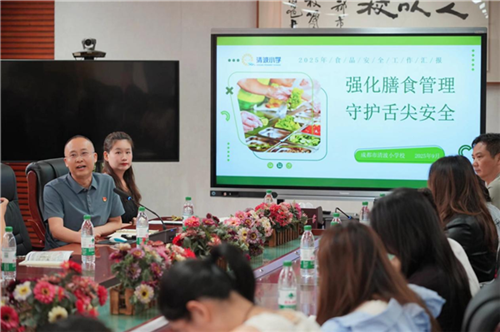 学校党支部专职副书记陈斌伦就食堂安全工作作专题汇报。他强调:“孩子的健康,从来不是小事。”明厨亮灶、营养配餐、家长监督机制——清波小学用透明与专业,守护孩子“舌尖上的安全”,也传递着教育者的良心与温度。