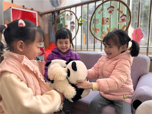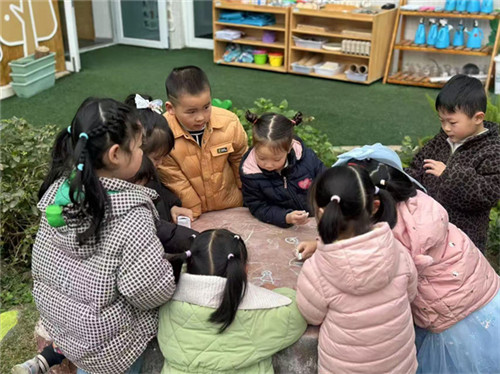 成都二十八幼慧润园教师把耳朵留给孩子,倾听孩子的童言童语;把眼睛留给孩子,聚焦孩子的一举一动;把大脑留给孩子,和孩子一起探究、发现、解读和成长。(李林)