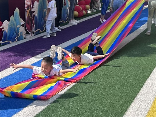 赛场上,萌娃们化身哪吒,挥洒激情、传递梦想。混天绫、风火轮、混元珠……融入多种游戏,尽显“我命由我不由天”的拼搏精神。