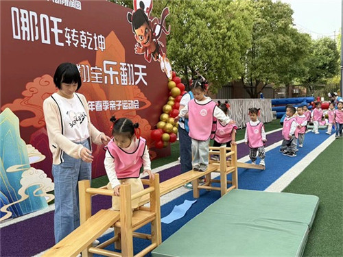 结合孩子们的兴趣,成都市第二十八幼儿园翔润园分年级组精心策划了一场以“哪吒转乾坤 翔宝乐翻天”为主题的亲子运动会,旨在让孩子们进一步感受传统文化的魅力,在运动中学会勇敢与团结,同时增进亲子间的默契。