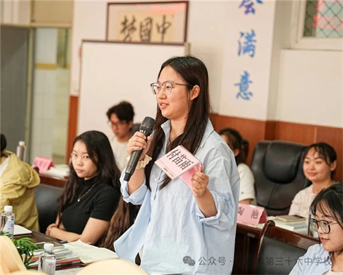 随后,新入职教师们依次进行自我介绍。大家或分享初入校园时的“小惊喜”——从同事的热情帮助到校园的人文氛围,每一个细节都满含对教育工作的期待;或坦诚提出工作中的“小困惑”——关于课堂管理技巧、教学资源整合等实际问题,展现出青年教师积极进取、求真务实的态度。真诚的交流让彼此距离迅速拉近,也让新教师们感受到了成都三十六中大家庭的温暖。