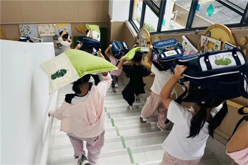 一分钟后,第二次警报响起。各班老师立即组织幼儿弯腰低身、用书本或双手护头,沿着预定逃生路线,快速、有序地向操场安全地带撤离。楼道疏导人员各就其位,默契配合,确保通道畅通无阻。