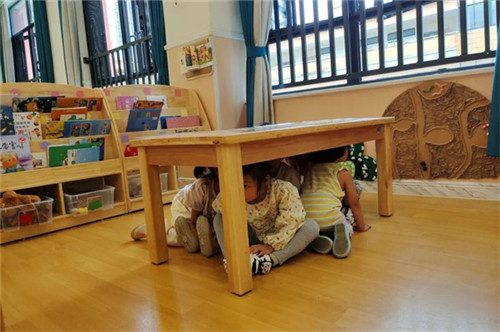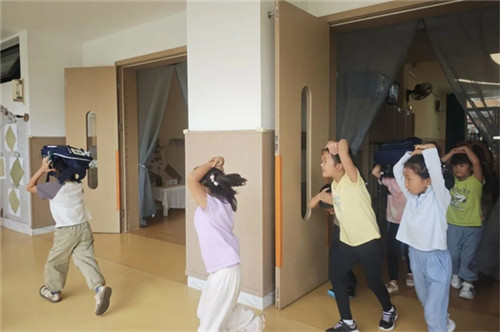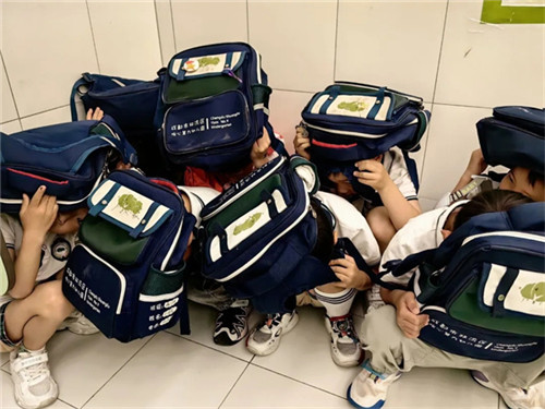 随着一声急促的警报声划破天空。“地震啦!”孩子们瞬间反应,在老师的指挥下迅速抱头、闭眼,就近躲避到桌下、墙角等安全三角区,尽可能蜷缩身体,保护头部。