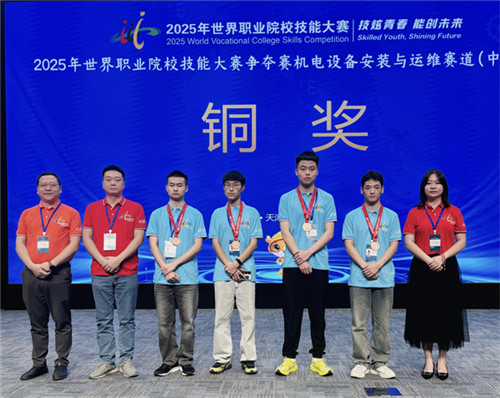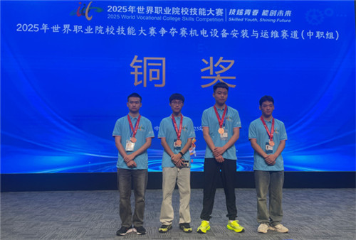 9月18日,在天津举行的2025年世界职业院校技能大赛争夺赛机电设备安装与运维赛道比赛中,成都石化工业学校2023级电子技术应用3班刘川豪、2024级电子技术应用大专班车杭潼、2023级电子技术应用大专班赖俊洋和郑烨然四位选手代表四川省参赛并斩获铜奖,实现了四川省2025年在该赛道获奖零的突破!
