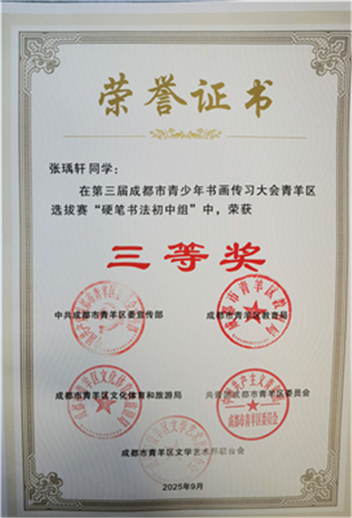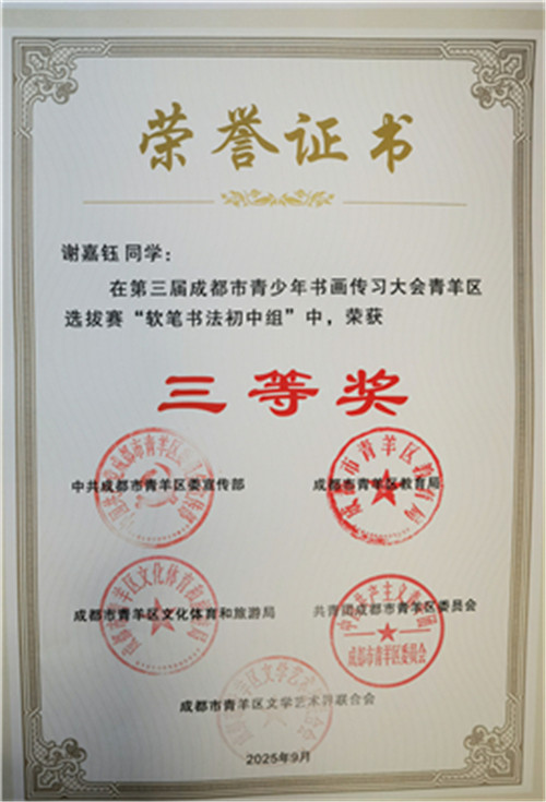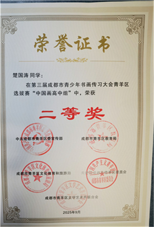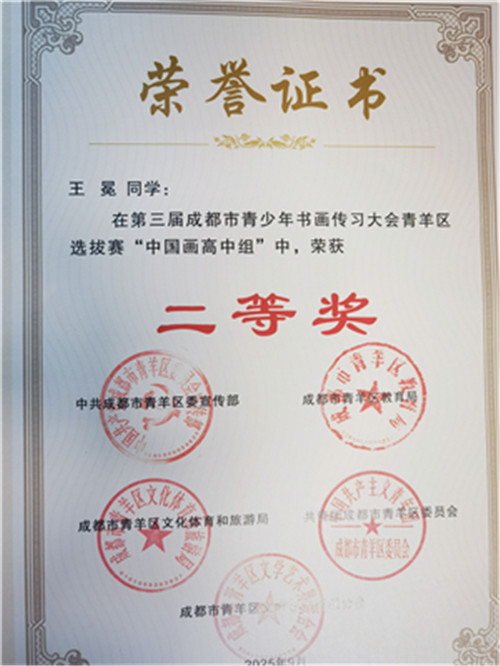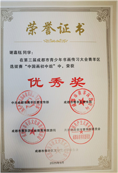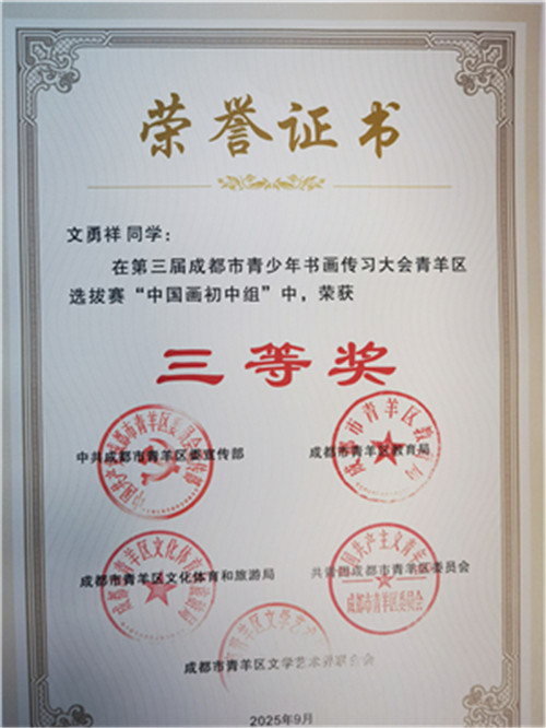 黄麒颖与获奖同学们所取得的成绩,不仅是个人专业素养与艺术才华的生动体现,更是该校长期重视美育工作、深耕艺术教育的成果见证。未来,青羊特校将继续推进美育建设,为学生搭建更多展示才华的平台,促进他们全面发展,融入社会。(赖波 黄麒颖)