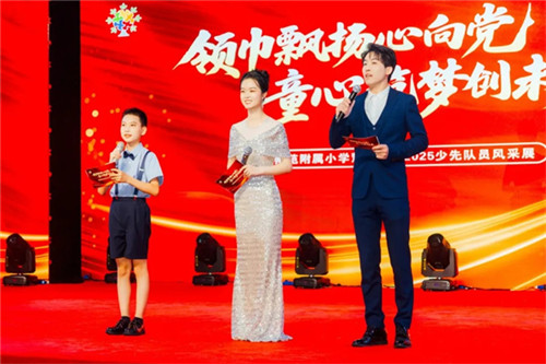 2025年5月29日,成都师范附属小学慧源校区化作璀璨星河,以一场主题为“领巾飘扬心向党 童心筑梦创未来”的少先队风采展,点亮属于红领巾的荣光之夜。铜管乐声里跃动着雏凤清鸣,聚光灯下飘扬起如诗中的“绛绡”,让我们一同庆祝每一个孩子的六一儿童节。