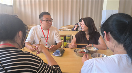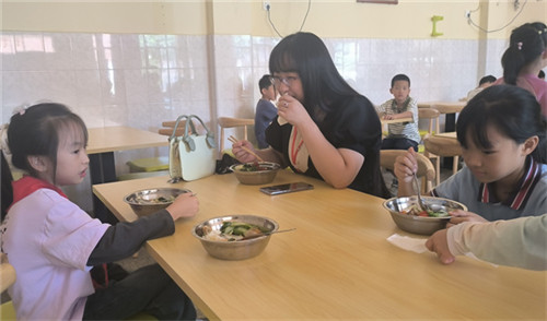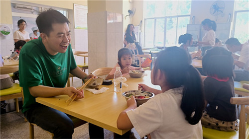 每日午间,都能看到何毅、值日老师以及膳管会成员的身影出现在学生中间,践行“陪餐制”。他们不仅与孩子们同锅同灶用餐,更注重在用餐过程中与孩子们亲切交流,细心询问:“今天的饭菜合口味吗?”“最喜欢吃哪道菜?”“能不能吃饱?”认真倾听孩子们最真实的“食”话反馈,并详细记录。通过陪餐,学校能第一时间了解菜品口味和质量,及时将学生的意见反馈给食堂,用于后续菜谱的优化与调整。