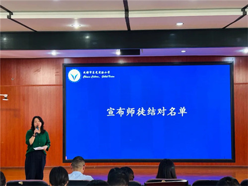 杨莉为全体师徒送上深情寄语:希望师傅们以“东风化雨”的耐心,做示范者与成长的脚手架,从“我做你看”到“你做我伴”,助力徒弟独立前行;以“德厚流光”的胸怀,关注课堂内外的全面成长;以“薪火相传”的智慧,传递经验而不复制,鼓励徒弟走出自己的路。希望徒弟们常怀空杯之心,学“术”悟“道”;常怀思索之志,借经验铸己见;常怀观照之智,修炼从容心性。