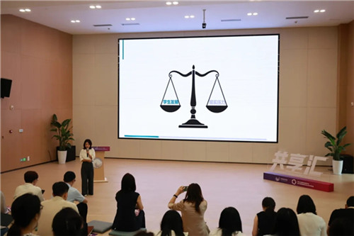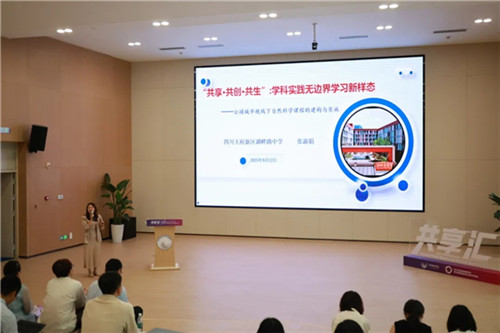 天府五小副校长刘聪颖、湖畔路中学副校长张淑娟则从校外科教资源“校内转化”角度切入,分享了“家门口的科学课”实践经验。刘聪颖介绍,学校依托天府新区“共享中心”平台,引入科技馆、科普基地的流动展品和专家讲座,结合校园“科学探究角”开展项目式学习;张淑娟则以“湖畔科学营地”为例,讲述了如何联动社区科技企业、家长志愿者(如本次参会的核动力研究院职员李已才),将核电知识科普、编程工作坊等资源融入课后服务。“共享不是简单的资源叠加,而是基于学生需求的精准设计。”两位副校长的分享,展现了新区学校在资源整合中的主动性与创新性。