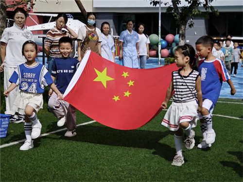 大五班的小朋友精心准备了爱牙日国旗下活动。以有趣的情景剧、动感的舞蹈,在欢笑中学习护牙知识,培养爱护牙齿的好习惯。