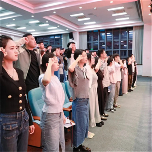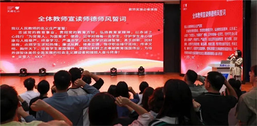 “我以人民教师的名义宣誓:忠诚党的教育事业,恪守师德规范……”在教师发展部主任缪茂鑫的领誓下,全体教师庄严宣誓,将“立德树人”使命深植于心,以“四有”好老师标准砥砺前行。