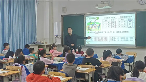 数学课堂上,智慧火花接连绽放。先锋小学江先华老师与芦葭学校鄢翱老师同课异构《捐书》一课,各展教学巧思。