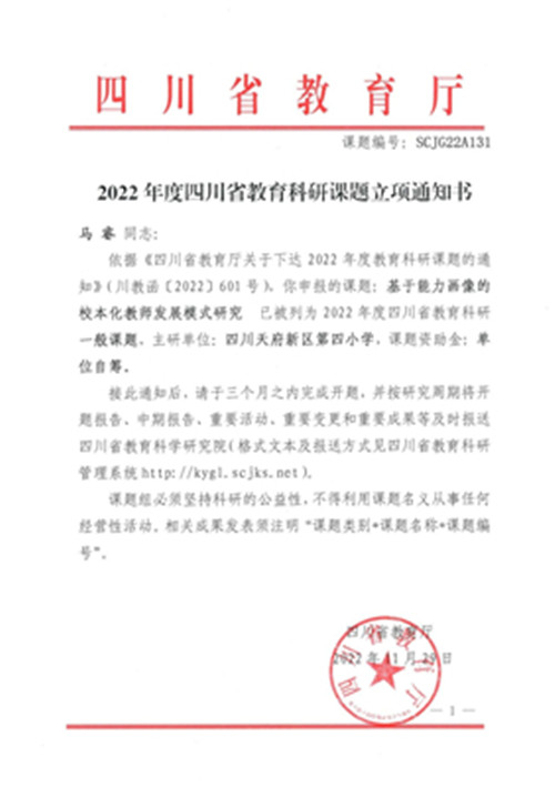 金秋送爽,硕果盈枝。在刚刚揭晓的成都市首届教师评价素养提升典型案例评选活动中,四川天府新区第四小学报送的案例《全周期·证据化·进阶式:小学教师技术化评价模式的实践探索》从众多参赛案例中脱颖而出,荣获市级一等奖!这是天府四小在教育评价改革领域获得的又一重要殊荣,是对该校长期以来坚持科学评价、推动教师专业发展的充分肯定。