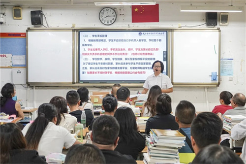 家长讲堂结束,2025级全体家长移步各班教室,参加各班班主任主持的分班家长会。班主任针对开学以来了解到的本班学生的特点,就班级发展规划、学科学习特点及要求、班级规章制度、家校合作方式等与家长们进行了细致的交流。班主任还就手机管理、作息安排、安全管理等家长们关心的问题进行了说明和提醒。学科教师就本学科的学科素养要求、学习方法、教学方式等和家长展开了深入交流。