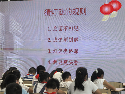 课堂尾声,一场紧张的笔答竞猜拉开帷幕。笔试题目紧扣灯谜规则,既有“溪边小坐待月出(打一字)”这类需结合汉字方位的谜题,也有“禁止效仿(2字学校用语)”等贴近生活的趣味题目,全面考察同学们对“底面不相犯”“别解成谜”等规则的掌握。据悉,本次笔答将从众多参赛者中推选3名种子选手,代表文翁实验小学出战“幸福水城杯”2025青少年灯谜大赛,与众多青少年灯谜爱好者同台竞技。