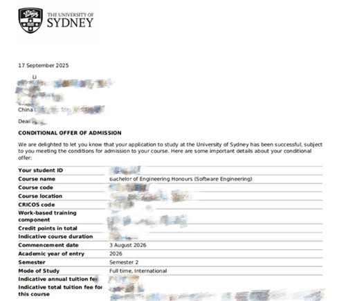 近日,成都市温江区二十一世纪学校留学中心捷报频传!李同学凭借优异的学术表现和综合素养,成功获得2025年QS世界大学排名第18位的悉尼大学计算机工程系offer!