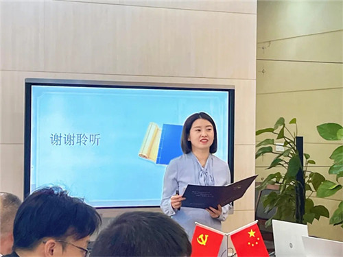 教导处副主任、语文老师杨佳代表《核心素养视域下中华优秀传统文化校本化实践研究——小学语文学科实践活动设计与创新探索》课题组、体育组肖元红老师代表《基于运动首选数据反馈提升小学生耐力素质的教学策略实践研究》课题组依次进行了区级课题开题报告。