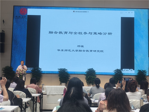 重庆师范大学教授申仁洪就《课程视角的融合教育与融合教育场域的课程》进行分享。他从“课程视角的融合教育”理念,课程资源的普惠性、可及性、便捷性、充足性、丰富性是课程实施的关键性保障,到融合教育场域课程、学习本位的支持体系助力课程,进行全面的讲解。
