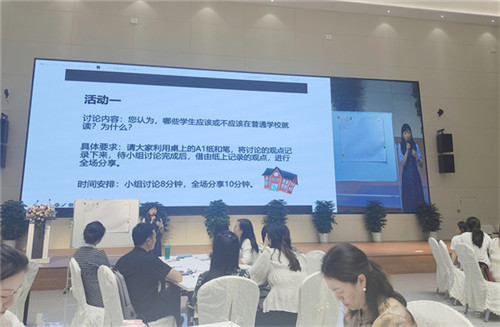 研训设计了理论学习、问题引导、合作学习与汇报、反思评价等环节,引导一线融合教育教师、学校管理者、区县教研员一起深度参与,在思维的沟通、碰撞中,创造出融合教育思维的火花。