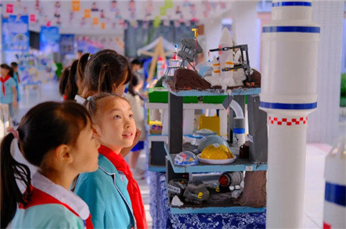 “少年问天”特色课:学校科技教师与四年级学生联动,以“万户飞天→长征火箭”为脉络,拆解火箭反作用力、分级脱落原理,在互动中深化航天认知。